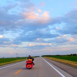 Woke at 03:30. Riding by 4. Lots of gas stops, but no long breaks. Just finished setting up bed. Sleeping in Russell, Minnesota.