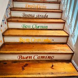 Then just as I head back, possibly from slowing down, mindfully not pace (FYI), I notice my first Camino de Santiago sign on the floor, just a few yards from where I haphazardly chose to book 5 days ago.