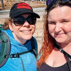 Natalie tells me she has something for the pain. And we stop and use gel and take ibuprofen.