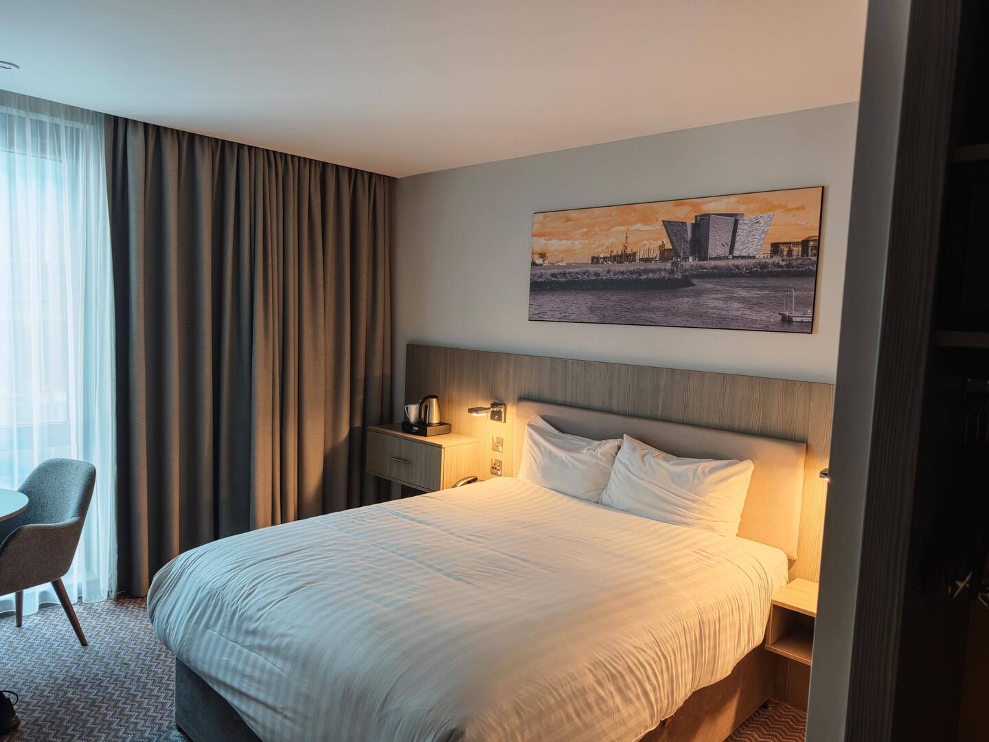 Grande hotel a 4 stelle nel centro di Belfast, camere pulite, i vetri delle finestre un po' meno. Biscotti e acqua gratis. Cena ottima, antipasti, main dish e dolce. Ceasar Salade, curry con verdure eLæs mere