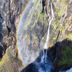 Gruppo di cascate alte oltre 300 metri. La veduta dall'alto della passerella è spettacolare.