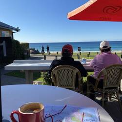 Next, we drove up the hill of Mollymook to Bannisters which is Rick Stein's restaurant. It is in a magnificent setting and we had a wonderful lunch - seafood mainly and a lovely creme brulee. TrulyLæs mere
