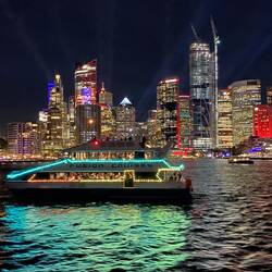 Tonight we walked down to Darling Harbour to King's Wharf No 9 and waited and waited in the cold for our Constellation Cruise around Sydney Harbour to see the Sydney icons lit up for Vivid. It wasLæs mere