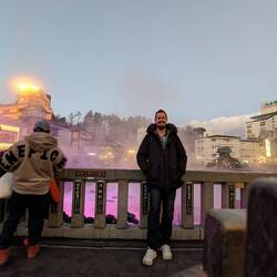 While wandering through kusatsu I mostly just picked a direction and walked to see where I could end up. The first thing which took my attention was the temple on the hill so I headed up that way. It was flurries at the time which made it feel quite magical. I got myself a little custard man and used one of the hot foot baths, the whole place reminded me a lot of Rotorua with the sulphur smell.