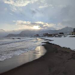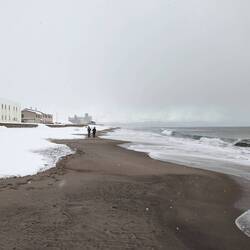 I continued walking down to the water as I wanted to see how far the snow went on the beach line. While walking around it would snow then sun then snow on and off every 10 mins or so.
