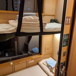 I jumped on the night train a little anxious as I had just read they don't give you a pillow or bedding or towel, you sleep on carpet without curtains and there was no luggage storage in the 190cmRead more