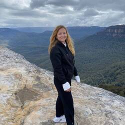 Beeindruckender waren dann aber natürlich die Blue Mountains. Wir waren zuerst in der „Scenic World“, in der man mit einer Seilbahn und einem Zug, der eine 52 Grad Neigung hat, einen ersten Eindruck vom Nationalpark bekam. Danach haben wir in Leura eine Mittagspause gemacht, in der ich mir in einer Bäckerei einen der bekannten „Meat Pies“ 🥧 hier geholt habe und dann von einer Gruppe von vier koreanischen Frauen gefragt wurde, ob ich Fotos von ihnen vor verschiedenen bunten Wänden mache. Sie sind immer von Fotospot zu Fotospot weitergegangen und ich dann hinterher 😁 (dass sie koreanisch waren, hab ich dann an ihrem „Gamsahamnida“ (danke) gehört).