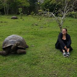 Bei dem zweiten Stopp haben wir an zwei "Löchern" und an den Lavatunneln angehalten. Es war wie in Jurassic Park! Unser persönliches Highlight waren die Schildkröten. Was bei uns die Kühe und Rehe sind, die am Straßenrand stehen, sind es hier die Schildkröten. Es war ein unvergessliches Erlebnis den Tieren so nahe zu sein und das in "freier" Wildbahn. Galapagos ist eine so naturbedachte und tierliebe Insel, da können wir uns eine riesen Scheibe abschneiden! Morgen geht es zum wandern und schnorcheln nach North Seymour, wo wir die kleinen Dinos sehen werden. 🤩🤩Read more