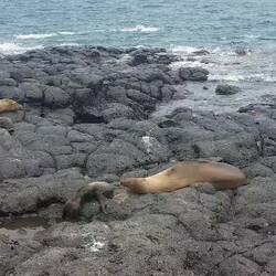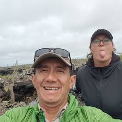 Um 08.00 Uhr wurden wir mit einem Jeep vom Hotel abgeholt und fuhren hinaus zum Vulcano Sierra Negra. Auf dem Weg dorthin entdeckten wir ein dschungelartiges Gebiet mit vielen Bananen-, Orangen-, und Papayaplantagen. Auf 1000m angekommen standen wir in Mitten von feuchten Nebelschwarden. Regenponchos übergezogen und weiter geht's zu Fuß weitere 300 Höhenmeter. Der Weg ging über Stock und Stein und wir erreichten nach ca. 1.5 Stunden den Krater des Sierra Negra (ein immer noch aktiver Vulkan, der am 27. Juni 2018 das letze Mal ausgebrochen ist). Zuerst sahen wir einen zauberhaften Regenbogen über den Krater. Der Wettergott hatte mit uns nassen Wanderer Mitleid und ließ den Himmel aufreißen und vor uns erstreckte sich der gesamte Krater mit einer Tiefe von 120m und einer Breite von 9km. Ja KM! Wahnsinn, diese Landschaft aus getrockneten Lavaströmen und Schwefel. Nach dem wir dort ca. 1 Stunde verbracht haben machten wir uns wieder auf dem Weg zurück. In Puerto Villamil angekommen haben wir uns für den morgigen Schnorchelausflug Neoprenanzüge ausgeliehen. Christian und Matthias haben sie heute bereits austesten können und dabei sogar eine Meeresschildkröte entdeckt. Da Christians Mietbrille defekt war bin ich vorerst draußen geblieben aber morgen haben wir nochmal eine Chance bei den Los Tuneles! 😊 In der Zeit habe ich nochmal Meeresechsen gesehen und wieder mal meine Seelöwen. Nach diesem wunderbaren Tag genießen wir Caipis und Mojitos an der Strandbar! PS: Hier ist nochmal ein Nachtrag zu Coco Loco 😂Read more