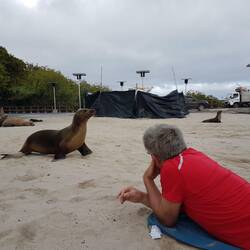 Heute früh um 08.00 Uhr ging es bei Regen mit einer Gruppe aus Amerikanern, Polen und Spaniern los Richtung "North Seymour". Angekommen am Hafen stand ich meinem ersten Schweinehund gegenüber. Wir mussten zu unserer Yacht per Schlauchboot rübergefahren werden und saßen direkt auf dem Rand mit Handys, Kamera und allen Wertsachen. Diese Überfährt stellte sich im Nachgang als "Spaziergang" heraus. Wir fuhren los zum Schnorchel auf eine unbewohnte Insel (hierzu gibt es heute keine Fotos, weil alles mit der Go Pro aufgenommen wurde. PS: Sie hat es überlebt) Es war ein zauberhafter Strand und der Sand fühlte sich wie Mehl zwischen den Zehen an. Christian hat einen kleinen Hai und zusammen haben wir einen Manta-Rochen vom Strand aus gesehen. Nach einem 1.5 Stunden langem Aufenthalt ging es weiter nach "North Seymour", dies ist eine Insel ohne menschliche Bewohner. Es dürfen nur einzelne Gruppen dort halt machen und das Tierreich beobachten. Diese Insel liegt halbwegs auf dem offenem Meer und entsprechend ist der Wellengang. Wir mussten von dem 1m hohen Rand des Bootes direkt ins Schlauchboot springen und dann wieder auf dem Rand sitzend an die Felswand fahren. Von dort aus mussten wir auf Ansage reagieren und die Welle abpassen, die uns mit dem Schlauchboot an den ersten Felssprung brachte. Lotte war natürlich die Erste aus Ihrem Boot und wie ein junges Rehlein hüpfte sie nach oben. 😂😂 Die Tierwelt war die super Entschädigung für die Strapazen der Anreise. Echsen, Seelöwen, Blau-Fußtölpel und andere Vögel konnten wir auf der Insel beobachten. Nach einer 1.5 Stunden Wanderung ging es wieder über den Sprung von den Klippen ins Schlauchboot zurück und auf die Yacht. Ich bin jetzt für alles offen und Nicole, ich kann nun mitfühlen wie es ist mit einem Schlauchboot übers offene Meer zu fahren 🤢 Morgen starten wir mit dem nächsten Boot zur Vulkaninsel Bartalomè und werden dort ebenfalls Schnorcheln und Wandern.Read more
