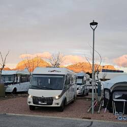 Direkt am Campingplatz führt ein Radweg vorbei, auf dem man zur 4 km entfernt liegenden quirligen Strandpromenade kommt. Er liegt genau zwischen 2 stark befahrenen Straßen. Wir standen in der Mitte des Platzes und konnten mit dem leisen Grundrauschen des Straßenverkehrs gut leben. Besonders gut gefallen hat uns der schöne Blick auf die umliegenden Berge. Außerdem kann man direkt vom Platz aus Wanderungen unternehmen.