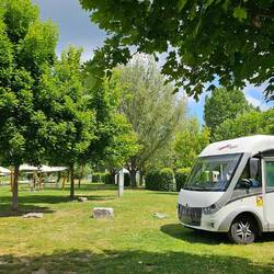 Der Stellplatz ist nur wenige km von der A7 entfernt und eignet sich daher auch gut als Übernachtungsplatz bei der Fahrt in den Urlaub. Preis 12 € (Stand 5/2025)