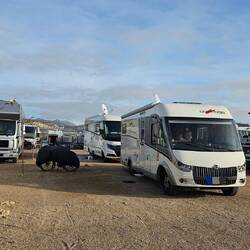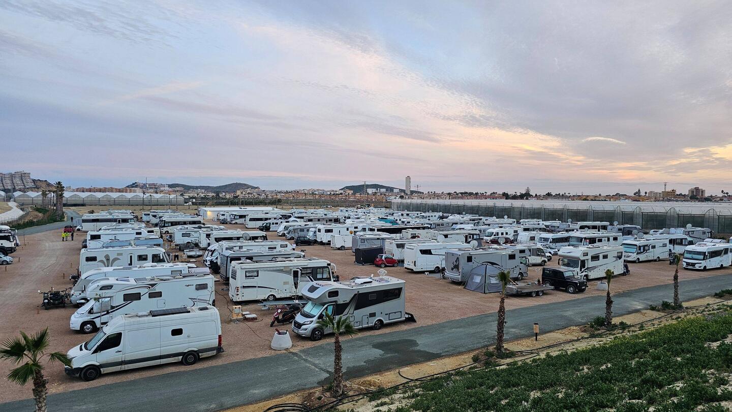 Der Campingplatz befindet sich noch im Aufbau, ein Teil des großen Areals wird jedoch bereits vermietet. Ab nächster Wintersaison sollen hier insgesamt 450 Stellplätze zur Verfügung stehen 🙉. Der auf Kies angelegte Platz liegt super ruhig etwas außerhalb von Puerto de Mazarrón mit Blick auf große Gewächshäuser der angrenzenden Obst- und Gemüseplantagen. Auf dem Gelände des Campingplatzes sind hunderte Bäume 🌳 frisch angepflanzt. In wenigen Jahren sieht der Platz sicherlich viel schöner aus.