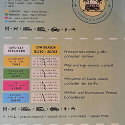 An der Rezeption spricht man deutsch, englisch und französisch. Alle Plätze verfügen über einen Strom- und Wasseranschluss. Die Parzellen sind unterschiedlich groß (Breite 7 bis 10 m, Länge 10 bis 15 m) und kosten aktuell zwischen 16 und 22 € incl. 5 kWh Strom am Tag. (Stand 1/2026).
