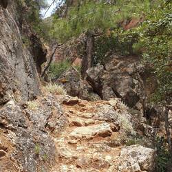 Thomas bekam direkt am Schluchteingang einen Anfall von Wanderunlust 🥴 und entschied sich für die Umkehr (er fühlte sich glaube ich magisch von den hübschen direkt am Strand liegenden Tavernen angezogen 😜). Ich hatte heute trotz unserer gestrigen Wanderung richtig Lust auf eine Tour und so machte ich mich alleine auf den Weg und nahm nur eine Flasche Wasser aus unserem Wanderrucksack mit.