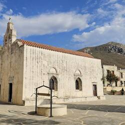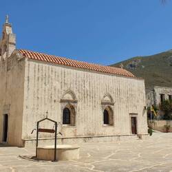 Das Kloster Agía Triada wurde im 17. Jh. im venezianischen Renaissance Stil erbaut und in den letzten Jahren liebevoll restauriert. Nicht nur die Klosterkirche ist eindrucksvoll sondern auch der schmucke Innenhof mit hübschen Treppen und Brüstungen. Hier wurden einst die Klosterszenen des Filmklassikers "Alexis Zorbás" mit Anthony Quinn gedreht 📽. Lohnenswert war auch zwei Tage später der Ausflug zum nahe gelegenen Kloster Gouverneto mit kleiner Wanderung zur Bärenhöhle. Die Mönche dort leben nach besonders strengen Maßstäben und fasten zwei Tage die Woche. Fotografieren ist dort verboten und das habe ich natürlich respektiert.