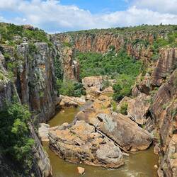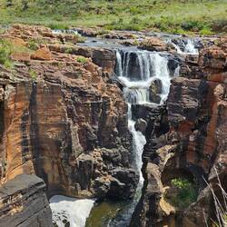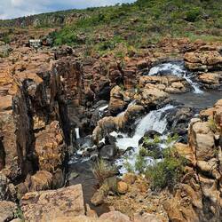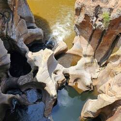 Heute fuhren wir auf einer Panorama Straße über 300 Kilometer durch das wunderschöne Hochland von Transvaal. Insgesamt ging es fast 5.000 m hoch und runter. Zahlreiche Wasserfälle und spektakuläre Aussichtspunkte säumten den Weg. Am schönsten war der Stopp bei den Bourke's Luck Potholes. Hier machten wir einen Spaziergang an einem Canyon mit tollen Felsauswaschungen.