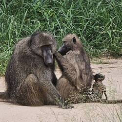 Wir sahen im Laufe unserer Pirschfahrten unzählige Elefanten, Zebras, Antilopen, Gnus und Affen. Zwei Löwen lagen auch nochmals mitten auf der Straße. Uns gefiel es schon sehr, mit dem eigenen Fahrzeug auf Pirsch zu sein und überall so lange stehen bleiben zu können wie wir wollen. Aber trotzdem sieht man bei einem gebuchten Game-Drive in aller Regel mehr. Die Ranger haben einfach ein besser geschultes Auge.