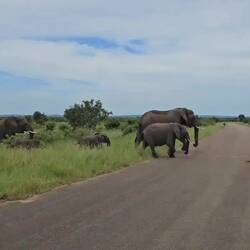 Nach der Übernachtung im Skukuza Camp verbrachten wir jeweils noch eine Nacht im Satara und im Letaba Camp. Insgesamt legten wir im Park über 300 km zurück. Die Maximalgeschwindigkeit beträgt 50 kmh, aber meistens fährt man weniger als halb so schnell. Durch die vielen Stopps ist man dann mehr oder weniger den ganzen Tag unterwegs. Aussteigen darf man unterwegs natürlich nicht.