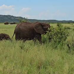 Was uns damals so beiindrukt hat ist das man ein elefant, löwe oder giraffe die im gebüsch standen, gar nicht gesehen hat wen da nichts in bewegung war. Sehr beindrukt hatte und uns auch sehr mitgenommen war das ein alter mänlicher löwe, schwer abgemagert und schwer verletzt am strasenrand rum stolperte , bedrängt von andere löwen. Und uns erzählt wurde das dieser löwe kein tag mehr überlebt. Ich habe da tagelang nicht von geschlafen. Da entgegen war die entlose weite und am horizont vorbei maschierenden büffel unvergeslich. [Ingrid]