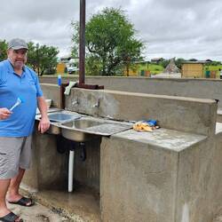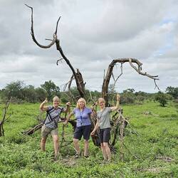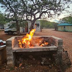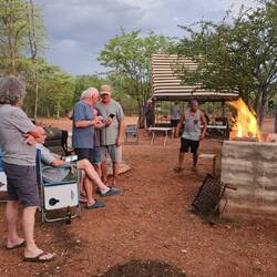 Am Nachmittag wurden wir dann vom Farmbesitzer abgeholt und auf den Ladeflächen von zwei Pick-ups zur Farm gebracht, wo zwei zahme Geparden frei herumliefen. Sie waren erstaunlich zutraulich, den notwendigen Respekt vor ihnen hatten wir trotzdem. Spätestens bei der Fütterung sahen wir, dass es sich um gefräßige Raubkatzen handelte 🙉. 1000 Fotos weiter ging es zurück zum Camp. Es fing an zu gewittern und kurz darauf öffnete der Himmel seine Schleusen. Innerhalb kürzester Zeit stand der gesamte Platz unter Wasser und die Temperaturen fielen innerhalb weniger Minuten so stark, dass ich sogar fror ☃️. Das hätte ich mir eine Stunde zuvor in meinen kühnsten Träumen nicht vorstellen können. Wir befürchteten schon, dass unser zweiter Gruppen Grillabend ins Wasser fällt, aber mit etwas Verspätung klappte es dann doch noch. Jeder brachte einen Salat oder ein Dessert mit und so hatten wir alle ein leckeres Abendessen 😋 und noch einen netten Abend 🥳.Read more