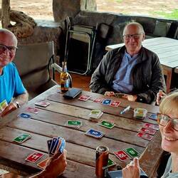 Wir verbrachten auf dem landschaftlich toll gelegenen Campingplatz trotzdem eine schöne Zeit. Es tat richtig gut, an einem Ort mal für 2 Tage zu bleiben und sich von den Strapazen der Reise zu erholen. Der viele Regen sorgte außerdem dafür, dass die Temperaturen auf ein angenehmes Niveau fielen. Schön war es auch, dass wir hier nur mit 4 weiteren Wohnmobilen unterwegs waren. Das war eine schöne Gruppengröße. Wir führten nette Gespräche und spielten Doppelkopf und Skip Bo. Das Doppelkopfspiel habe ich haushoch gewonnen. Ich würde jetzt ja gerne behaupten, dass ich das Spiel ausschließlich durch Taktik und Raffinesse gewohnen hätte, aber das wäre echt gelogen. So ein tolles Blatt hatte ich noch nie (10 ♥️♦️😛).