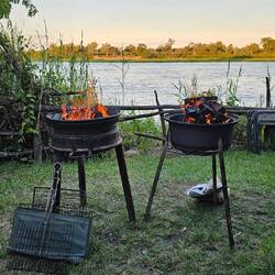 Heute fuhren wir dann 330 km durch den schmalen Caprivi Streifen zwischen Botswana und Angola auf relativ guter und fast kerzengerader Straße weiter nach Bagani. Nur wenige Ortschaften säumen den Weg. Es ist eine Zeitreise, vorbei an urtümlichen Krals, in denen die Einheimischen in einfachsten Verhältnissen leben. Das Wasser muss mit Eimern und Kanistern von zentralen Wasserstellen herangeschafft werden. Nach einer schönen Mittagspause an den Popa Falls ging es dann auf einer Wellblech- und Sandpiste weiter zur toll am Kavango gelegenen Mahangu Safari Lodge, wo wir zwei Tage bleiben werden. Der Tag endete perfekt mit einem schönen Grillabend mit Lagerfeuer 🔥. Jeder steuerte einen Salat oder Nachtisch bei und so hatten wir alle ein köstliches Abendessen. Getoppt wurde das ganze noch durch Flusspferde 🦏, die wir dort beobachten konnten. Das laute Grunzen begleitete uns den ganzen Abend.Read more