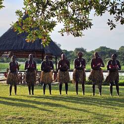 Weiter ging es dann 220 km zur ebenfalls schön gelegenen N'Kwazi Lodge, die direkt an der Grenze zu Angola liegt. Hier erlebten wir nochmals afrikanisches Feeling am Kavango. Die Mitarbeitenden der Lodge sangen und tanzten für uns und gaben uns dabei das Gefühl, es gerne zu tun. Sie freuten sich sicherlich auch über das kleine Taschengeld.