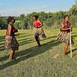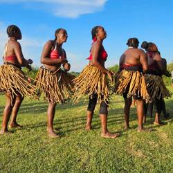 Wir hatten sehr interessante Gespräche mit dem sehr gut englisch sprechenden Dorfchef. Er lebt mit seinem Clan nur 3 Monate im Jahr in diesem Living Museum. Dann kehrt er mit seiner Familie in die Kalahari zurück und ein anderer Clan kommt für ein paar Monate. Besonders schön fand ich, als alle zum Abschluss für uns getanzt und gesungen haben. Ich fand den Besuch äußerst beeindruckend.