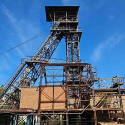 Nach der Übernachtung auf dem Campingplatz des Kupferquelle Resorts besichtigten wir heute eine in 1996 still gelegte Kupfermine, deren Ruinen mit dem Förderturm sehr fotogen waren. Ehemals beschäftigte die Mine über 1.000 Arbeiter. Beachtlich war dort auch die Sammlung von über 1.000 Gesteinsarten, die in allen möglichen Farben glitzerten.
