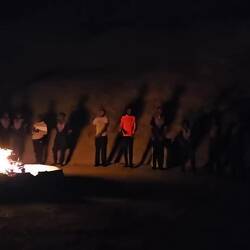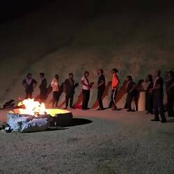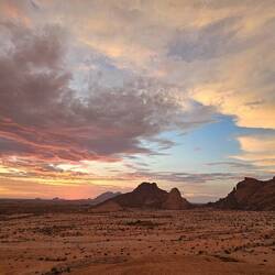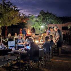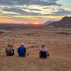 Am zweiten Tag kam unsere Reisegruppe aus Windhoek dazu. Die Temperaturen waren etwas angenehmer als am Tag zuvor und so machten wir am frühen Abend eine kleine Wanderung auf einen Aussichtsberg mit Blick auf die Spitzkoppe. Martin überraschte uns mit einem Sundowner auf dem Gipfel 🍷und wir genossen alle den tollen Ausblick und den wunderschönen Sonnenuntergang. Zurück auf unserem Campingplatz erwartete uns ein Lagerfeuer. Hier wurden wir erneut von Martin überrascht. Ein 20-köpfiger Chor sang und tanzte für uns. Das war ein ganz besonderes Erlebnis und viele von uns waren richtig ergriffen 🎶. Schöner hätte der Tag nicht enden können.Read more