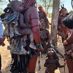 Für uns mag es komisch aussehen, barbusig herumzulaufen, aber bei den Himbas ist die Brust nicht so sexualisiert wie in unserer Kultur. Sie gehen auch so einkaufen. Ein Mitreisender aus unserer Gruppe hat 3 Himba Frauen im Supermarkt gesehen, die genauso gekleidet waren wie die Himba Frauen in dem kleinen Dorf, das wir besuchten. Besonders fand ich noch, dass sie auf der Seite schlafen und ihren Kopf dabei auf ein kleines und äußerst unbequem aussehendes Holzgestell platzieren. Für uns kaum vorstellbar ist auch der Brauch, den Kindern im Alter von ca. 12 Jahren ohne Betäubung die unteren Schneidezähne auszuschlagen 🥶.