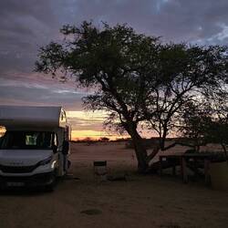 Der Campingplatz in der Wüste 50 km von der nächsten Ortschaft entfernt war der absolute Traum. Schöner kann mal wirklich nicht übernachten. Um uns herum tolle Felslandschaften, die bei Sonnenuntergang wunderschön angeleuchtet wurden. Abends saßen wir am Lagerfeuer und danach genossen wir noch lange den Blick in den nächtlichen Himmel. Abseits von jeglicher Zivilisation glitzerte der Sternenhimmel einmalig. Ich konnte sogar ein Foto von der Milchstraße machen. Was für ein schöner Tag 🌟🌟🌟!Read more