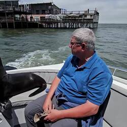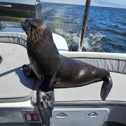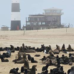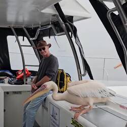 Ansonsten ging für uns der Tag toll weiter. Wir wurden in Swapokmund von Jeeps abgeholt und nach Walvis Bay gebracht. Dort bestiegen wir einen Katamaran, mit dem wir mehrere Stunden unterwegs waren. Noch im Hafen gesellte sich eine Pelzrobbe zu uns und kurz später auch noch zwei Pelikane. Die Drei waren total unterhaltsam. Ein später hinzukommender Cousin der Pelzrobbe war allerdings weniger gut gelaunt. Er hinterließ bei Rolf eine ordentliche Bisswunde im Unterarm 😱. Wir kamen mit dem Boot an riesigen Kolonien von Pelzrobben vorbei. Sie machten einen Heidenlärm und verbreiteten einen im wahrsten Sinne des Wortes tierischen Gestank. In dieser Gegend sollen insgesamt 40 bis 60 Tausend dieser Spezies leben. Sehr schön waren auch die vielen Flamingos anzuschauen. Von der Crew wurden wir nach Strich und Faden verwöhnt. Es gab ein tolles Lunch mit frischen Austern, leckeren Snacks und Sekt 🦪🥂.Read more
