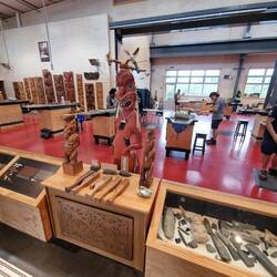 Wir haben die geführte Tour durch die drei Schulen gemacht: Das New Zealand Māori Arts and Crafts Institute beherbergt die nationalen Māori-Schulen für Stein- und Knochen-Schnitzerei, Holzschnitzerei sowie Flachs-Weben. Man kann Schülern und Lehrern bei der Arbeit zusehen – echte Traditionen werden hier weitergegeben und für kommende Generationen lebendig gehalten.
