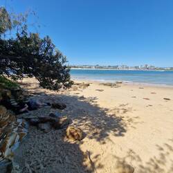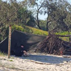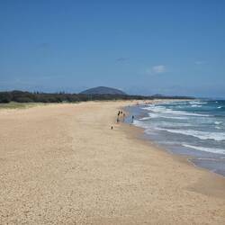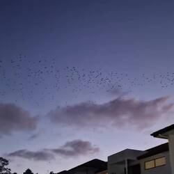 Am Morgen des zweiten Tages kamen wir kurz nach Sonnenaufgang an einem Strand nahe der Sunshine Coast an. Unter einem Baum schliefen wir ein paar Stunden im Sand. Dann ging es noch zu einem anderen Strand und abends in ein Hostel in Hervey Bay. Hier sahen wir bei unserer Ankunft einen Fledermausschwarm... wow, wahrscheinlich habe ich in meinem ganzen Leben nicht so viele Fledermäuse gesehen, wie in diesen paar Minuten. Viele hundert, wenn nicht tausende Tiere müssen es gewesen sein, von denen die meisten wirklich große Exemplare waren und auch, wenn sie weit oben waren, konnte man die typische Siluette gut erkennen.