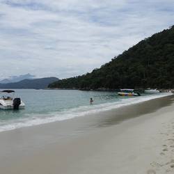 Wir brauchten keinen Wecker um 1:00 Uhr aufzustehen, unsere Sachen zu nehmen und zum Treffpunkt zu kommen. Neben uns kamen dann auch nur Pili und Peter (unser irischer Scherzkeks der Gruppe) mit. Unser Guide war Thomas aus Argentinien, der vor 2,5 Jahren auf der Insel Urlaub machte und dann dort blieb. Seitdem macht er die Nachtwanderungen zum Pijo de Papagaio, der höchsten Erhebung der Insel mit knapp 1.000 Metern. Die Erhebung ist ein Felsen auf der Spitze des Berges, der mit ein wenig Fantasie tatsächlich wie ein Papagai aussieht. Der Weg zur Spitze sollte knapp 3 Stunden dauern, 7 Km lang sein und die 1.000 Höhenmeter waren vollständig zu erklimmen. Das Ziel sollte der Sonnenaufgang von dort sein. Wir bekamen einen Wanderstock aus Bambus (oder auch zwei, wenn man wollte), eine Headlamp und dann ging es auch schon los. Die Musik und die Woo-Rufe der Feiernden waren noch laut zu hören, da kamen wir auch schon zu dem Eingang des Dschungels (wenn man es so nennen kann). Thomas erklärte uns ein paar Sachen und versprach uns dann immer prozentual zu sagen, wie weit wir es denn bereits geschafft haben. Der erste Abschnitt der Strecke war bereits sehr steil und wir waren wirklich dankbar für die Bambusstöcke, da sie unsere Beine und Knie sehr entlasteten. Es war stockdunkel um uns herum und es wirkte alles sehr friedlich auf uns. Bis auf die Mücken. Glücklicherweise hatten wir vorgesorgt und wir kamen ohne Mückenstich den Berg hoch. Die Mücken wurden jedoch vor allem von den Headlamp angezogen, sodass sie ständig vor uns herumtanzten. Nach aber knapp 50 Prozent war auch das erledigt, da es für die Mücken mittlerweile zu hoch war. Mit allen 100 Höhenmetern fiel dann auch die Temperatur um jeweils 1 Grad Celsius. Dennoch hatten wir unsere Sachen schnell durchgeschwitzt und waren daher auch dankbar, als es allmählich kühler wurde. Wir hatten Glück und sahen verschiedene Tiere unterwegs, die - wie wir - Nachts ihren Weg durch den Dschungel nahmen. Es gab Armadillos (Gürteltiere), Schlangen, Arachnos (grosse spinnenähnliche Tiere), Stickbugs, Glühwürmchen und andere Lebewesen zu bestaunen. Auch hier zeigte uns Thomas eine Baumart, die an anderen Baumarten zum Licht hochwächst und wie ein Parasit lebt (solche Arten fanden sich auch in Neuseeland). Er sagte dazu treffend, dass hier alles so friedlich wirkt, aber auch hier ein ständiger Kampf um das Überleben stattfindet. Wir machten ca. alle 25 Prozent eine kleine Wasserpause und der Weg war teilweise leicht zu bewältigen und teilweise sehr steil, sodass man durchaus klettern musste. Es ging durch die Bäume, über Felsen und Flüsse bis zum oberen Teil, wo wir unsere Bambusstöcke hinlegen mussten. Ab hier waren beide Hände gefragt, da es so steil wurde, dass wir uns an einem Seil hochziehen mussten und zum Klettern beide Hände brauchten. Oben angekommen, war es noch immer dunkel und wir nutzten dies um uns erstmal trockene Sachen und eine Jacke anzuziehen. Wir genossen die tolle Aussicht, die sich uns bot und langsam ging die Sonne auch auf. Parallel dazu nahmen aber auch die Wolken zu, sodass sich klare Sicht und Wolken abwechselten. Der Blick war aber großartig und es fühlte sich toll an den strapaziösen Aufstieg gemeistert zu haben. Thomas erklärte uns auch, welche Seite des Papagaienfelsens begehbar war und welche nicht (Good Side und Dead Side). Aber auch von der guten Seite ging es steil bergab (definitiv nichts für Leute mit Höhenangst). Nach 1,5 Stunden und dem Sonnenaufgang ging es dann auch wieder bergab. Und der Abstieg - diesmal im hellen - war noch wesentlich herausfordernder als der Abstieg, wofür der feuchte Regenwald sorgte. Wir wurden begleitet von den Schreien der Brüllaffen, die die Sonne mit lauten Schreien begleiteten. Dies war so lauf, dass man dachte, dass ein Haufen Dinosaurier aus dem Jurassic Park ausgebrochen ist. Nach weiteren 3 Stunden Abstieg kamen wir dann pünktlich zum Frühstück im Hotel an. Wir fühlten uns danach eine Dusche zu nehmen und zu schlafen. Stattdessen packten wir aber unsere Badesachen ein und gingen zum Boot. Nun stand unser Inselhooping auf dem Programm. Wir sassen in einem Motorboot, in dem Steffi sich nach ganz vorne neben einigen Argentiniern setzte. Und dann ging es auch schon los. Wir fuhren dann bei der Tour den ersten Strand auf einer anderen Insel an. Es fanden sich hier nur wenige Leute (entweder welche, die ein Taxi-Boot nahmen oder andere Gruppen). Der Strand war wunderschön und vom Dschungel umgeben, dass Wasser war klar und angenehm kühl. Aufgrund der starken Sonne und einem Sonnenbrand aus Hot Water Beach zog Chris sein Schwimmshirt an und schwamm ein wenig. Steffi machte es ihm dann nach und wir schliefen dann am Strand auch kurz ein. Aber es sollte weitergehen. Die nächste Insel ist vor allem bei Brasilianern dafür bekannt, dass die High Society hier riesige Parties veranstaltet hat und ein Klatsch und Tratsch Magazin den Ort mal veröffentlichte (oder so ähnlich). Es fanden sich dementsprechend viele Anlegestellen und eine Villa auf der Insel, deren Strand aber auch nur „ok“ war. Dann ging es an einem Korallenriff Schnorcheln, wo sich neben vielen bunten Fischen und Korallen auch Schildkröten befanden, die - sobald man zu nahe kam - schnell verschwanden. Danach ging es zu einem weiteren schönen Strand auf einer sehr kleinen Insel, die praktisch nur aus Strand bestand. Auch hier wiederholte sich das Spiel (Planschen und Schlafen). Das nächste Ziel war eine blaue Lagune, die jedoch heute grün war (die Sonne sei schuld) bei der es aber weitere farbenfrohe Fische zu bewundern galt. Als letztes hielten wir an der Ilha Grande, wo wir etwas Essen konnten, bevor es dann zum kleinen Dorf zurückging. Abends gingen wir dann noch am Strand in ein Fischrestaurant, wo wir köstlichen lokalen Fisch und einer Shrimp-Bananen-Soße mit Reis und Maniok-Püree aßen und den Wellen am Strand lauschen konnten (interessanterweise ist es auf der Ilha Gr
