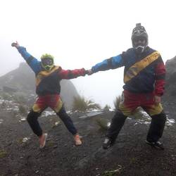 Soviel bereits vorab: Wir überlebten die Todesstrasse gleich zweimal. Wir frühstückten und wurden pünktlich um 7:30 Uhr vom Hotel abgeholt, um zunächst noch ein paar Leute einzusammeln (wir waren am Ende acht Leute in der Gruppe). Wir fuhren dann nach La Cumbre auf ca. 4.700 Meter, wo das Abenteuer starten sollte. Es regnete jedoch die ganze Nacht in La Paz und auf der Höhe von La Cumbre war der Regen Schnee. Es war rundherum weiss und 0 Grad Celsius. Die Straßen waren glatt und wir fuhren daher noch ein paar Höhenmeter runter, wo der Schnee bei 5 Grad schmolz und zu Wasser wurde. Rundherum war es neblig und wolkig und ab und an brachen die Berge durch diese Decke, was einen tollen Ausblick bot. Es ging an den Seiten steil einige Hundert bis Tausend Meter herunter (was sich den ganzen Tag nicht ändern sollte). Wir bekamen unsere Schutzkleidung und unser Mountainbike sowie eine erste Einweisung. Wir waren hier noch nicht selbst auf der Todesstrasse, sondern auf der von der Weltbank gesponserten neuen Verbindung nach La Paz aus dem Jahr 2006 (das Jahr an dem die eigentliche Todesstrasse auch soweit nicht mehr befahren wird). Die Straße war dementsprechend zweispurig und in einem hervorragenden Zustand. Wir fuhren los und die Straße in enormen Tempo herunter (nach unserem Guide Thomas bis zu 60-70 Km/h), sodass wir sogar LKW überholen mussten. Es gab um diese Uhrzeit kaum Verkehr und so tiefer wir fuhren, umso mehr verzogen sich die Wolken und der Nebel. Das Szenario raubte uns den Atem, denn es tauchten Wasserfälle und Dschungel auf. Die Berge waren dicht bewachsen und unglaublich hoch. Das Fahren bot hier noch keine sonderlich große Herausforderung, als vielmehr Abstand einzuhalten und zu Bremsen. Da es nur hinunter ging, war dementsprechend einzig eine sehr hohe Konzentration gefragt. Die Fahrt machte sehr viel Spaß und wir fuhren dann bis kurz vor die eigentliche Todesstrasse. Von dort fuhren wir mit dem Van zum Startpunkt, wo wir erst einmal Mittag aßen. Von hier auf über 3.200 Metern konnte man die Todesstrasse gut überblicken und sie flößte uns viel Respekt ein. Es handelt sich tatsächlich nur um eine sehr kleine einspurige Straße, die nicht asphaltiert ist, sehr enge Kurven hat und auf der sich vereinzelte Wasserfälle finden. Umgeben ist das ganze von engen Kliffen mit Hunderten Metern Fallhöhe. Das ganze findet sich in einem feuchten Regenwald, der sehr dicht bewaldet ist und es gilt zudem als lokale Besonderheit Linksverkehr. Früher fuhren hier tonnenschwere LKW, PKW, Motorräder und andere Fahrzeuge, was man sich aber absolut nicht mehr vorstellen kann. Die Strassen sind so eng, dass es beinahe unmöglich erscheint, dass zwei Autos aneinander vorbeifahren können (wir hatten aber auch die Möglichkeit es einmal Live zu sehen, wobei einem das Herz stehenbleiben kann). Es starben dabei über 50 Menschen pro Jahr. Heute wird die Straße nur noch für touristische Zwecke, Krankenwagen und Polizei genutzt. Es stirbt bei den touristischen Aktivitäten jedoch noch immer im Durchschnitt eine Person pro Jahr. Der Name stammt jedoch nicht nur von den Toten der Benutzung der Straße, sondern auch von Exekutionen, die hier stattfanden. Errichtet wurde sie in den 1930ern durch Kriegsgefangene aus Paraguay, weshalb sie auch als verflucht gilt. Dementsprechend war insbesondere Steffi zunächst sehr vorsichtig und fuhr die unebene Strasse langsam hinab. Da Chris sie nicht alleine lassen wollte, blieb er hinter ihr. Im Laufe der weiteren Fahrt wurde sie jedoch immer sicherer und vor allem schneller. Aufgrund der unebenen Straße wurden wir auch ordentlich am ganzen Körper durchgeschüttelt. Die Straße bot sehr enge Kurven und eine tolle Aussicht. Wir waren jedoch so konzentriert, dass wir viele Details erst im Nachhinein auf unseren GoPro Videos sahen. Wir machten verschiedene Stopps für Essen und Fotos und fuhren die Straße immer weiter hinab. Das Klima änderte sich dabei ebenfalls, sodass wir am Ende des Ausflugs drei Klimazonen und über 3.000 Höhenmeter bewältigten. Die Strecke war wirklich der Wahnsinn und das Tempo enorm. Wir hatten wirklich eine Menge Spaß und es war eines unserer Highlights. Die Fahrt ist nur kaum in Worte zu fassen. Jedenfalls war es die erste Fahrradtour, die mehr in die Arme und den Oberkörper ging als in die Beine. Am Ende waren wir aber wahnsinnig schnell. Während die meisten Gruppen die Fahrt zwischen 15 und 17 Uhr beenden, waren wir bereits vor 14 Uhr fertig. Die Guides meinten hierzu, dass sie wirklich mal Spaß hatten, da endlich mal eine schnelle Gruppe dabei war. Nach Übergabe des Survivor-Shirts und einmal kurz durchatmen, ging es bei knapp 27 Grad dann mit dem Van zu einem kleinen Restaurant, wo wir zur Mittag essen und danach auch in den Pool hüpfen konnten. Was wir dann selbstverständlich auch taten. Dann ging es knapp 3 Stunden mit dem Van auch zurück nach La Paz. Wir fuhren die moderne in 2006 eröffnete Strasse, die wirklich gut ausgebaut ist. Die Bolivianer machen sie jedoch aufgrund des Fahrstils zur neuen Todesstrasse. Nach unzähligen waghalsigen Überholmanövern und dem obligatorischen Ausweichen von Strassenhunden ging es dann auch langsam die 85 Km zurück nach La Paz. Die Fahrt zurück war mindestens genauso spannend wie die Fahrt auf der Todesstrasse. Am Abend ging es nur kurz was Essen bevor Steffi dann ihr heutiges Wehwehchen - ihre Sehnen im Arm - auskurieren durfte.Read more