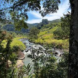 Wir laufen von dem Wasserfall direkt ins Dorf Ranomafana. Der Name steht für Rano = Wasser und mafana = heiß. Hier gibt es heiße Quellen, die auch viele Menschen anzieht.