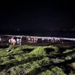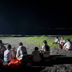 Ein Teil der Zeremonie fand am Meer statt. Am schwarzen Strand wird gebetet und die Toten dem Meer übergeben.