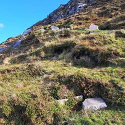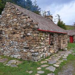 Hier steht der kleiner Bauernhof von Dan O'Hara aus dem 19. Jahrhundert. Er lebte mit seiner Frau und seinen sieben Kindern in einem kleinen Häuschen am Fuße der Twelve Bens. Die gesamte Ernte, dieBaca selengkapnya