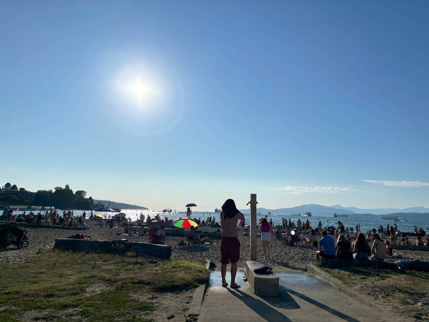 Zeit für eine Stärkung. Beim Asiaten versorgen wir uns mit feinstem Abendessen und genießen den Kitsilano Beach