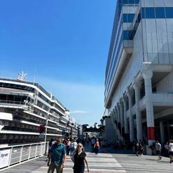 Wir machen eine Radtour. Und starten im Hafen. Hier kann man die großen Kreuzfahrtschiffe bestaunen.