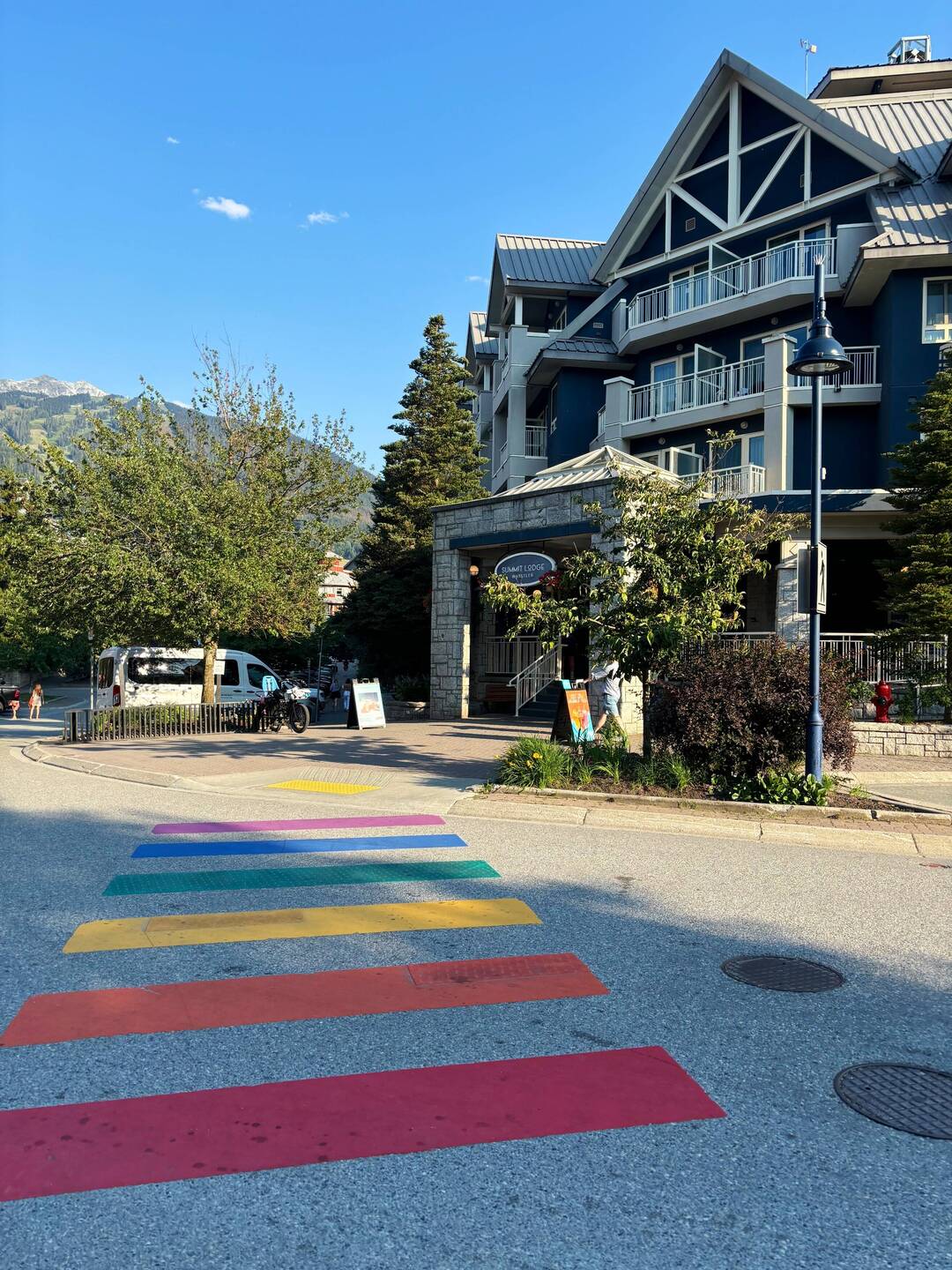Whistler ist wirklich eine süße Ortschaft mit bunter Fußgängerzone. Im Sommer werden Skilifte und Skipiste zum Downhill biken genutzt.