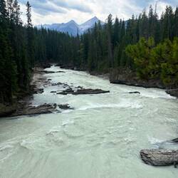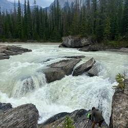 Die Wapta Wasserfälle haben wir uns erst aus der Ferne angesehen. Auf der abgelegenen Straße abseits des Highway haben wir auch ein Reh mit seinen Zwillingen gesehen.