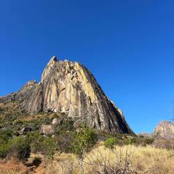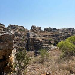 Über die Hochebene von Horombé erreichen wir das Felsmassiv - genannt Bischoffshut. Er bildet die Grenze zwischen zwei Stämmen. Einst hat ein Stamm den dort lebenden Stamm bedrängt undRead more