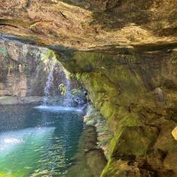 Wir laufen nach dem Essen noch bis zum Ende der Schlucht. Hier gibt es zwei Pools: den blauen und den schwarzen Pool.
