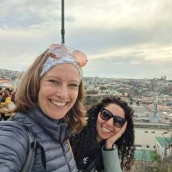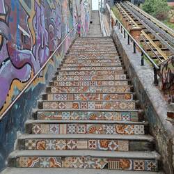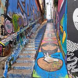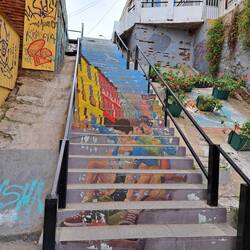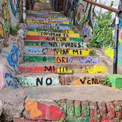 Nach dem Essen ging es wieder auf den Verdauungsspaziergang zum Busterminal und die zwei Stunden zurück nach Santiago. Super müde, mit über 22.000 Schritten und sehr vielen Treppen in den Beinen,Læs mere