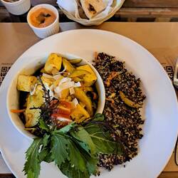 Für das Abendessen haben wir uns eines der besten Restaurants für Meeresfrüchte rausgesucht. Und mein happy-vegan-Face sagt alles, denn mein Tofu Curry mit dreierlei Quinoa war super lecker.