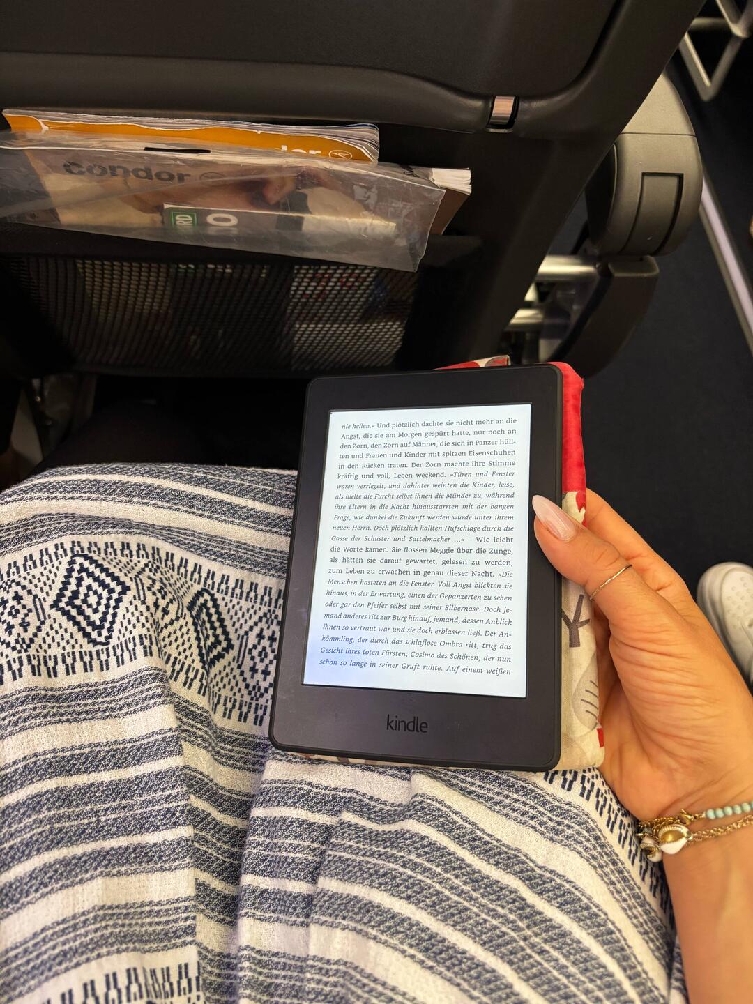 Im Flieger wird erst mal gelesen und dann SchlafЧитать далее